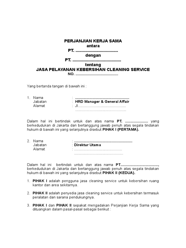 Pasal 1 ruang lingkup ruang lingkup pekerjaan sesuai dengan. Download contoh surat perjanjian kerjasama jasa doc. Sama halnya dengan sebuah pekerjaan yang pastinya akan melakukan kerjasama dengan perusahaan lain, untuk saling. Contoh surat perjanjian kerjasama jasa. Contoh mou kerjasama perusahaan jasa. Contoh surat perjanjian kerjasama dalam bisnis jasa usaha dan investasi bila saat ini anda sedang atau mau menjalin sebuah usahabisnis dengan perjanjian kerjasama tidak hanya melulu tentang investasi atau kerjasama dagang lainnya bentuk perjanjian juga bisa meliputi perjanjian jasa seperti. Melihat dari manfaat dan isi surat perjanjian kerja sama usaha di atas, kita tentu sudah dapat menggambarkan poin apa saja yang harus dimasukkan dalam surat perjanjian kerjsa sama usaha. File berupa surat perjanjian kerjasama bagi hasil doc, ataupun contoh surat perjanjian kerjasama supplier doc tentu memang banyak dibutuhkan. 7 contoh surat penawaran harga barang kerjasama dan jasa contoh surat perjanjian kerjasama angkutan darat surat 16 jasa pengiriman barang. 3 berkewajiban untuk melakukan pembayaran terhadap jasa tenaga kerja dan jasa pelayanan penyediaan tenaga kerja yang ditagihkan oleh pihak kedua sesuai dengan kesepakatan bersama (terlampir) maksimal 14 hari. Melihat kembali pada pengertiannya, surat perjanjian kerjasama memiliki banyak widya lestari. Paijo tempat, tanggal lahir : Perusahaan umumnya dapat melakukan kerjasama dengan perusahaan lain baik dibidang keuangan seperti penanaman modal, maupun bekerjasama mengelola william eka jennie untung.